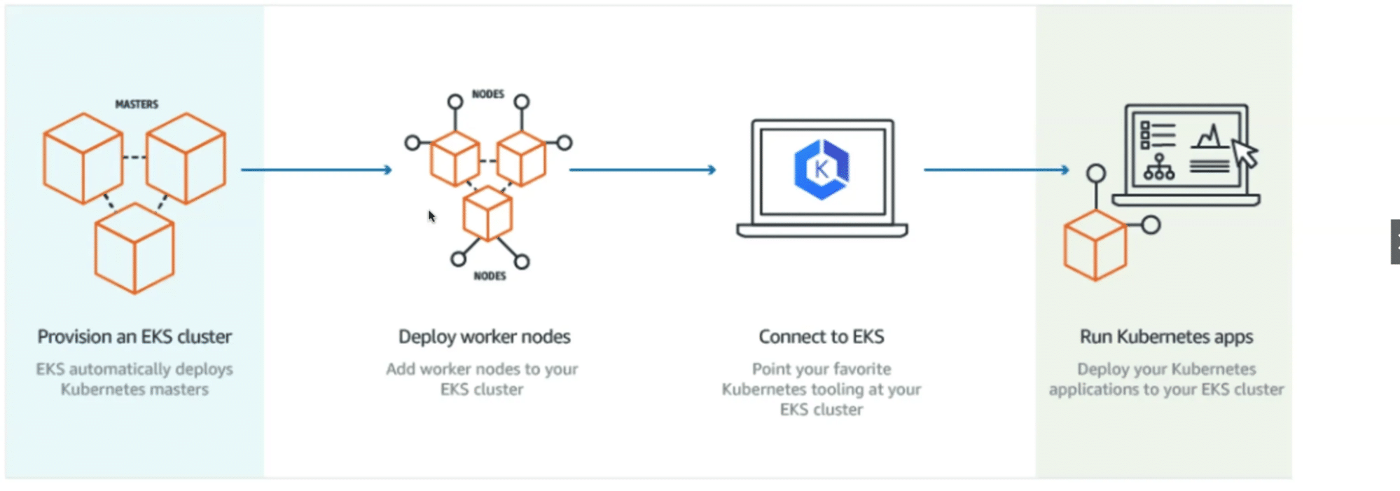 - Afin de pouvoir déployer correctement vos workloads dans vos nœuds de travail, il sera nécessaire de les connecter à EKS. Pour ce faire, vous utiliserez principalement Kubectl (CLI) qui est un outil largement utilisé pour la création et le déploiement de vos workloads.