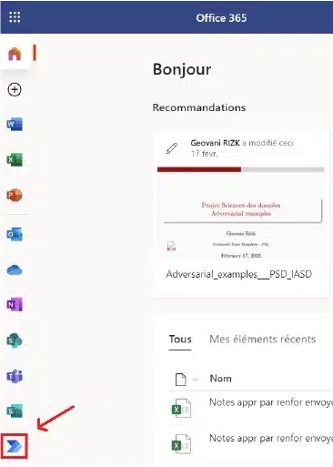 Dans la barre latéral à gauche, vous pouvez cliquez sur le logo de Power Automate qui s’affiche :