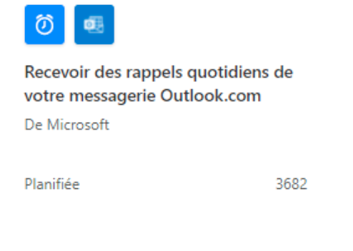 L’application utilisée ici est Outlook, le modèle permet de recevoir des rappels quotidiens de votre messagerie, la source du modèle est Microsoft et c’est une tâche planifiée.