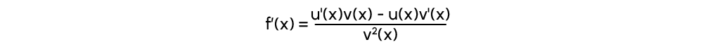 A présent si une fonction et la division de deux autres fonctions: f(x)=u(x)v(x) alors la dérivée sera