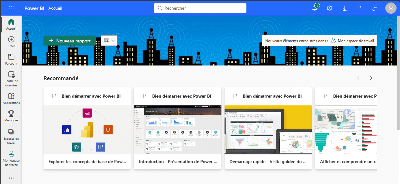 Vous atterrissez alors sur le service Power BI.