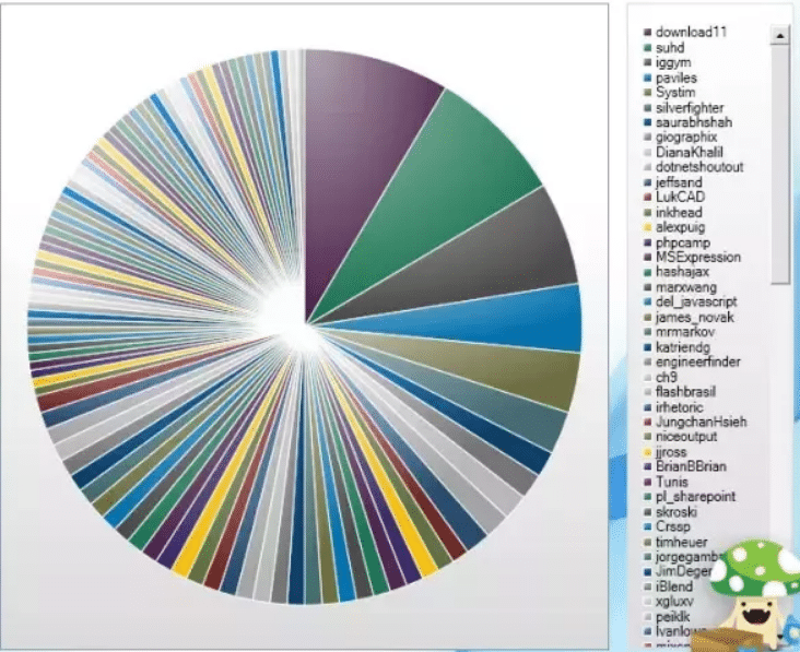 La multiplicité d’acteurs rend ce graphique globalement illisible, à part peut être 3 acteurs il est impossible de différencier les autres qui se trouvent noyés par l’information.