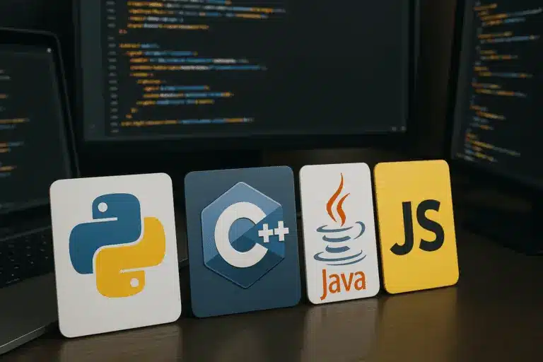 Beispiele: Python, verwendet in Data Science, Künstliche Intelligenz und Webentwicklung, Java, gewählt für Unternehmensanwendungen und die mobile Entwicklung (Android), C++ für Systeme, die optimale Leistung erfordern, wie Videospiele oder Systemsoftware.