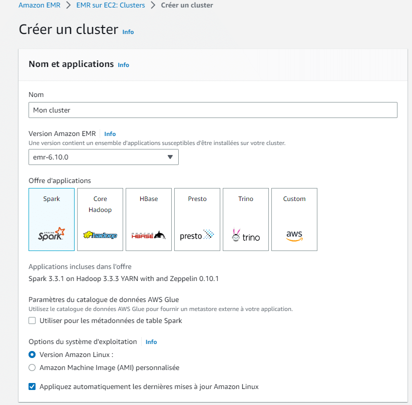 Wenn der EMR-Cluster erstellt wird, werden die erforderlichen Tools automatisch auf jedem Knoten des Clusters installiert (hauptsächlich Tools wie Hadoop, Spark oder Hive). Für die Planung und Ausführung von Verarbeitungsaufgaben werden Manager wie YARN (der bekannteste) oder Mesos verwendet.