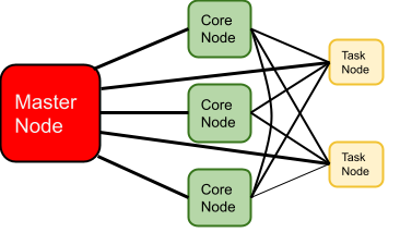 - Aufgabenknoten (task nodes): Diese Knoten sind optional und werden verwendet, um die Kapazität von parallelen Verarbeitungsaufgaben auf Daten zu erhöhen, wie MapReduce– oder Spark-Jobs. Sie speichern jedoch keine Daten auf dem HDFS.