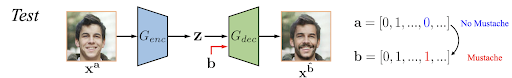 Sobald der Decoder/Generator-Teil trainiert ist, wird für die Umwandlung eines Bildes der Encoder-Teil verwendet, um das Bild in den latenten Raum zu codieren und die gewünschten neuen Attribute anzugeben, und der Generator erzeugt einfach ein neues Bild mit allen Regeln, die er während seiner Trainingsphase gelernt hat.