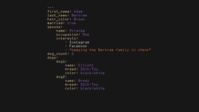 Es gibt keine üblichen Formatsymbole wie Klammern oder Anführungszeichen. YAML-Dateien haben die Erweiterung .yml oder .yaml und ihre Struktur ist eine Karte oder eine Liste.