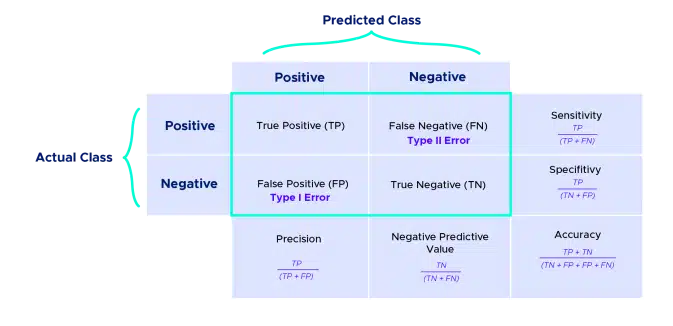 - True Negative (TN): Die Vorhersage und der tatsächliche Wert sind negativ.
