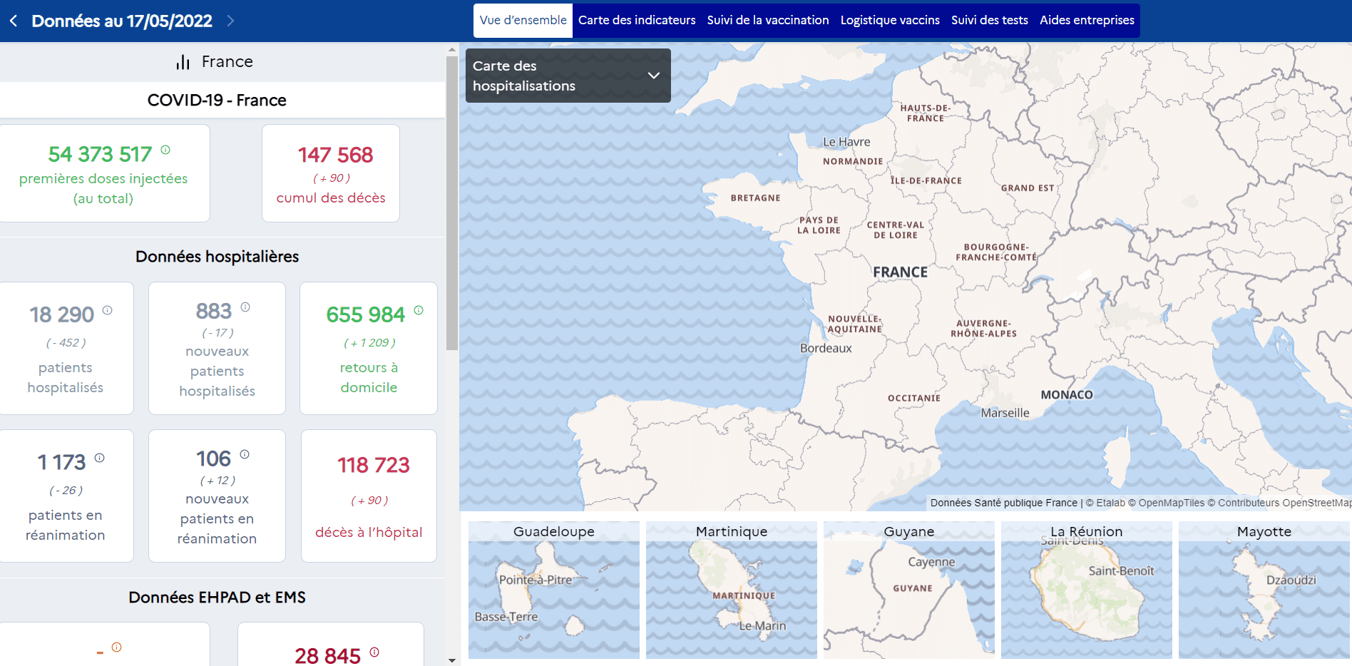 Ein weiterer Sektor, in dem dieses Werkzeug benötigt wird, ist das Gesundheitswesen. Dieser Sektor war nämlich besonders stark von Covid betroffen. Dieses Dashboard erfasste die wichtigsten Daten (Krankenhausdaten, Sterbedaten, Impfdaten) und ermöglichte es dem französischen Staat, je nach Entwicklung der Pandemie Maßnahmen zu ergreifen.