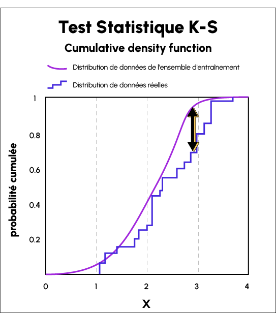 Die Kolmogorov-Smirnov-Statistik wird verwendet, um den Abstand zwischen den Verteilungsfunktionen der Daten aus der realen Welt der Stichproben und den Datenverteilungen des Trainingssatzes zu quantifizieren.