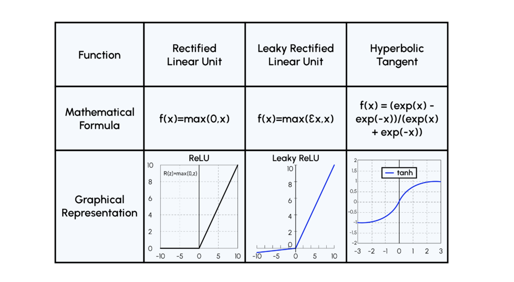 Hier sind mehrere Illustrationen von Aktivierungsfunktionen: