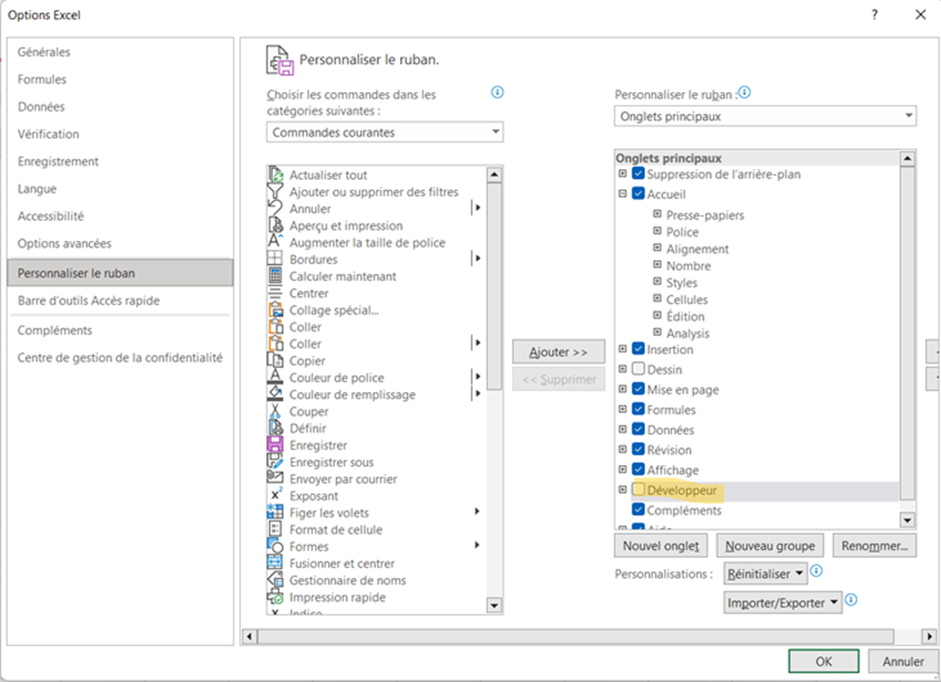 Bevor du das tust, musst du sicherstellen, dass die Registerkarte „Entwickler“ in der Multifunktionsleiste von Excel aktiviert und vorhanden ist. Dazu gehst du einfach in das Menü Datei / Optionen / Multifunktionsleiste anpassen und setzt dann ein Häkchen bei der Registerkarte Entwickler.