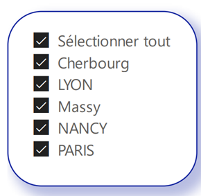 So kann das Segment Städte die Städte filtern, die auf den anderen Ansichten angezeigt werden.