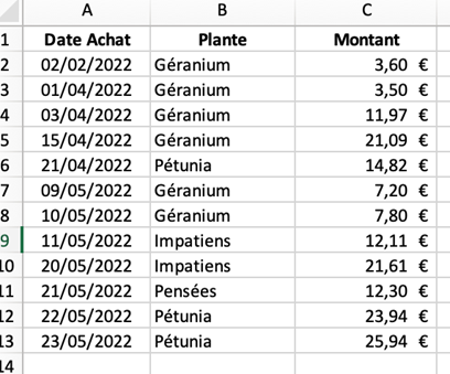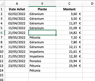Wenn Du z. B. die obige Manipulation durchgeführt hast, erhältst du die folgende Tabelle: (die Daten sind alle nach unten verschoben).