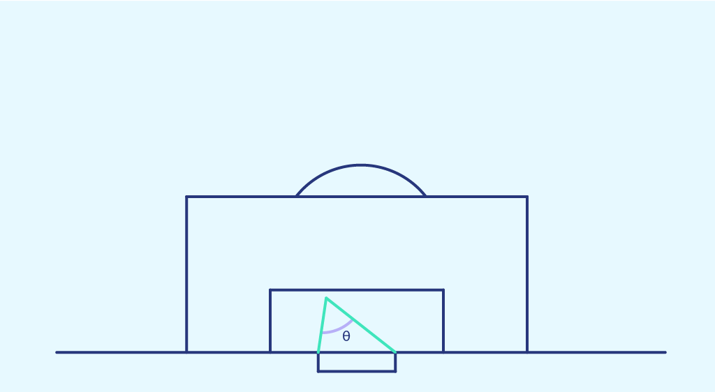 Der Schusswinkel ist der Winkel zwischen den beiden Pfosten an der Stelle des Schusses.