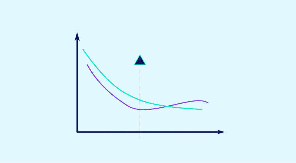 Overfitting wird auftreten, wenn sich das Modell zu eng an die Trainingsdaten anpasst und nicht gut auf die Testdaten verallgemeinert. Dies kann dazu führen, dass die Leistung des Modells bei den Testdaten sinkt.