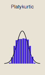 In diesem Fall ist die Kurtosis niedriger als bei einer Normalverteilung. Sie ist kleiner als 3 und die Exzess-Kurtosis kleiner als 0. Daher spricht man auch von negativer Verflachung, da der Exzess der Verflachung negativ ist.