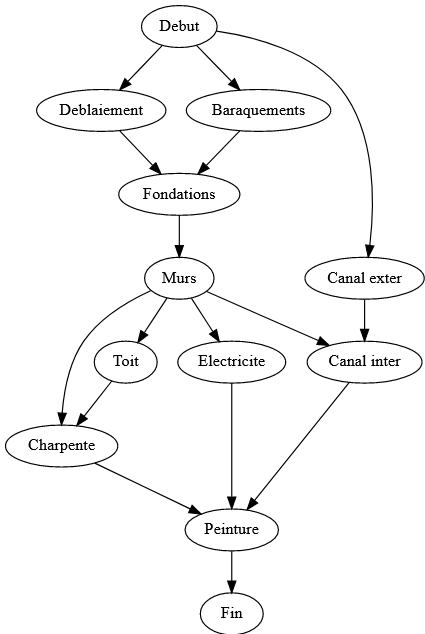 Der folgende gerichtete Graph stellt eine Liste von Aufgaben dar, die beim Bau eines Hauses erledigt werden müssen: