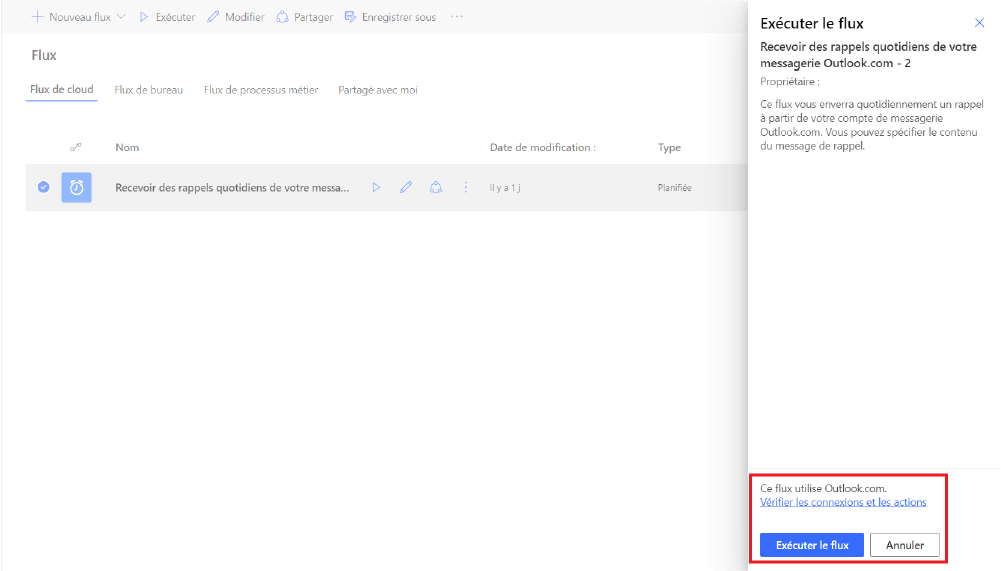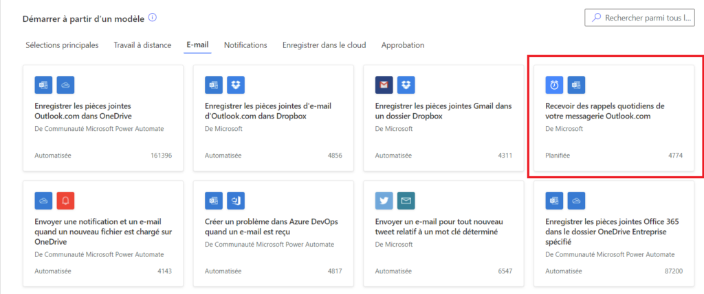 Die hier verwendete Anwendung ist Outlook, die Vorlage ermöglicht es dir, tägliche Erinnerungen von deiner Mailbox zu erhalten, die Quelle der Vorlage ist Microsoft und es ist eine geplante Aufgabe.