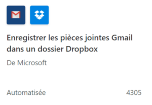 Die verwendeten Anwendungen sind Gmail und DropBox, die Vorlage speichert Gmail-Anhänge in einem DropBox-Ordner, die Quelle der Vorlage ist Microsoft und es handelt sich um eine automatisierte Aufgabe.
