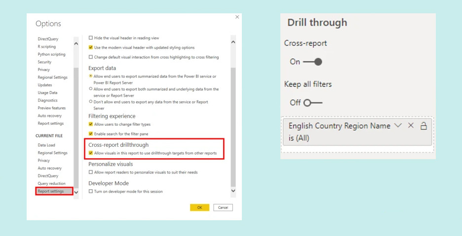 Eine weitere Funktion von Power BI ist das „Cross-Report Drillthrough“. Sie ermöglicht es, mehrere Berichte mit verknüpften Inhalten zu verbinden, so dass du ganz einfach zwischen ihnen wechseln kannst.