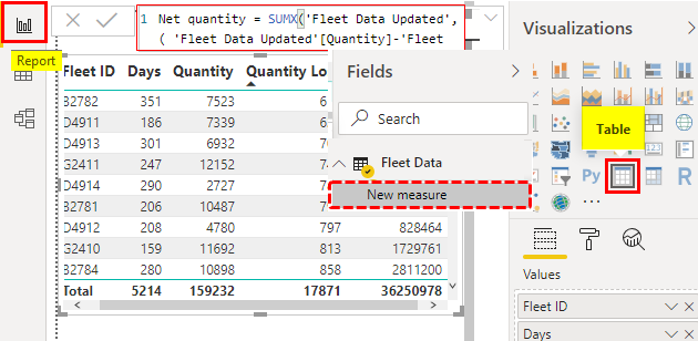 Die Anwendung der SUMX-Funktion in Power BI ist sehr einfach. Nachdem du den Datensatz geladen und die Tabelle benannt hast, klickst du einfach mit der rechten Maustaste auf die Tabelle und wählst „Neue Messung“.