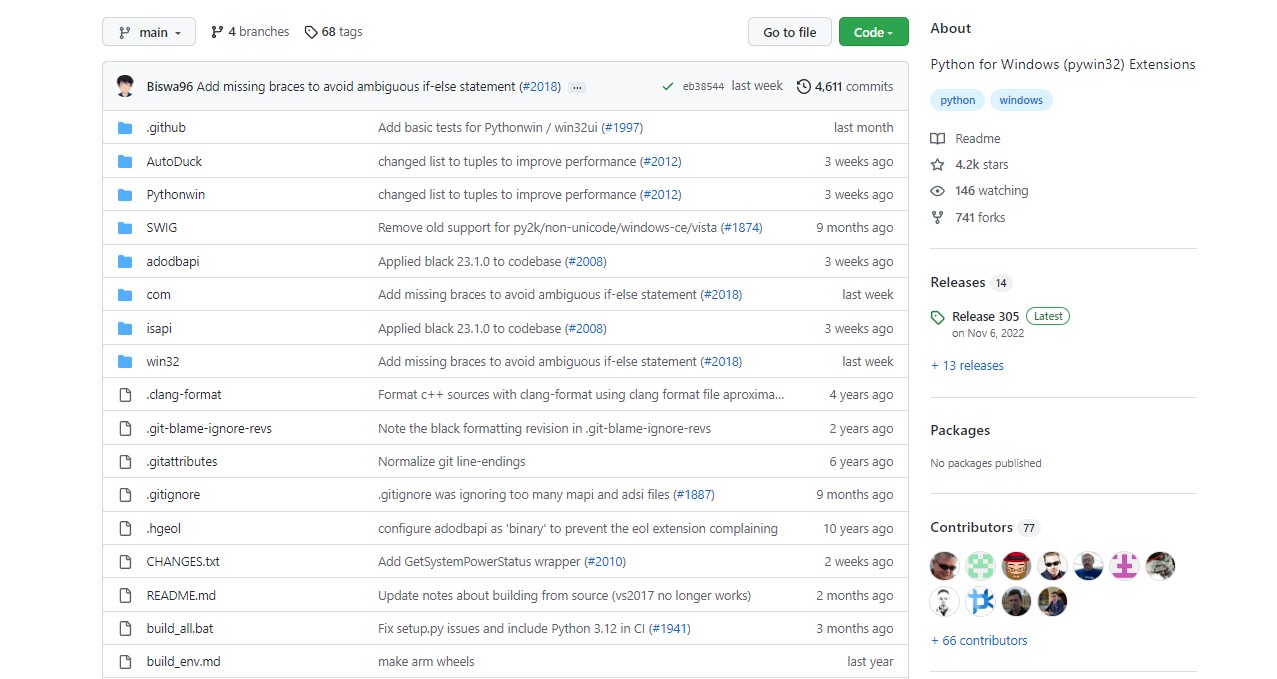 Ursprünglich hieß das Projekt „Win32All“ und wurde im Jahr 2000 in PyWin32 umbenannt. Seitdem hat es sich dank vieler Mitwirkender aus der Open-Source-Gemeinschaft ständig weiterentwickelt. Es wurden mehrere große Updates veröffentlicht, um neue Funktionen in Windows zu unterstützen.
