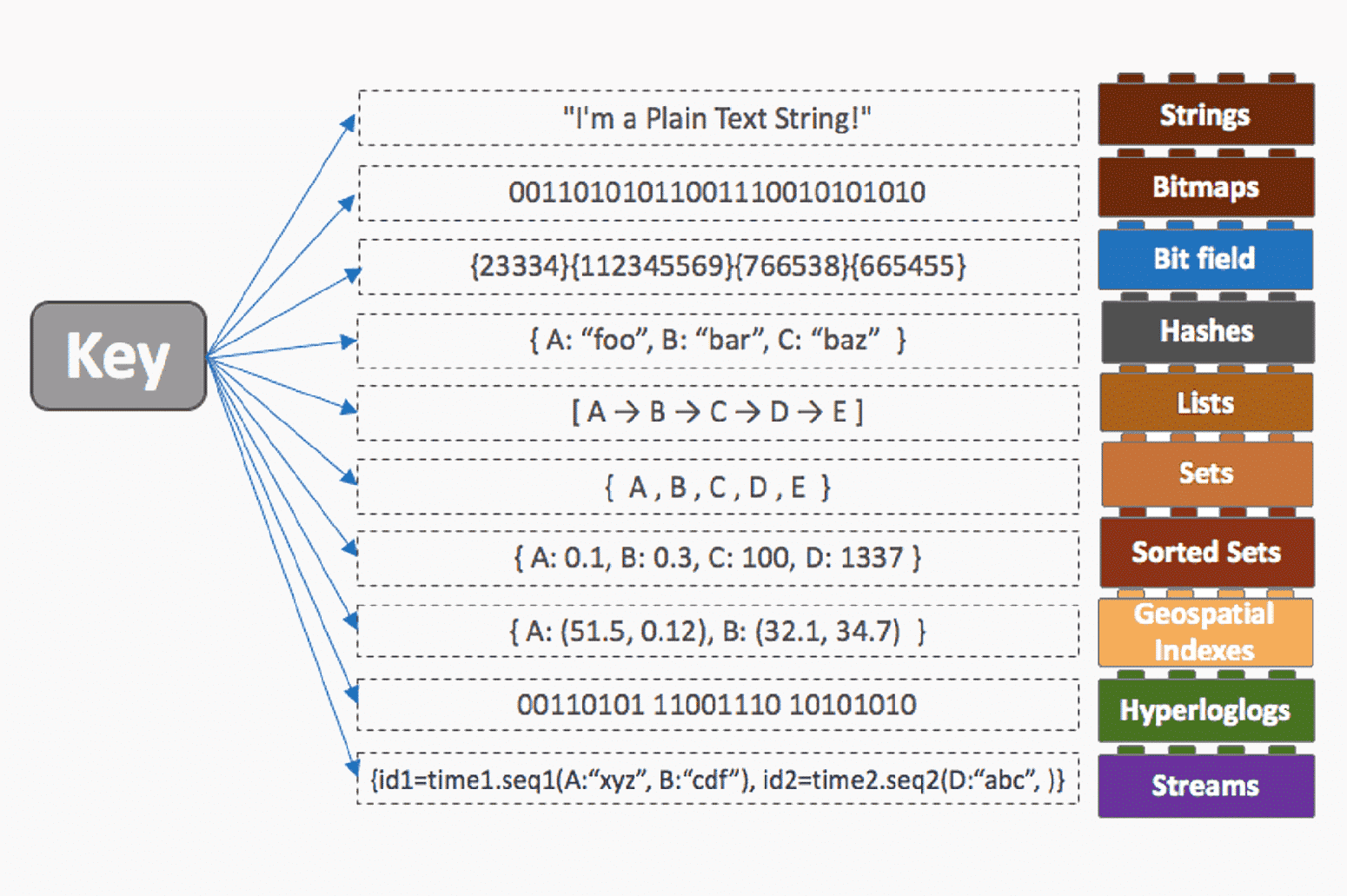 Redis ist eine NoSQL-Datenbank, deren Verwaltungssystem auf einer Schlüssel-Wert-Struktur basiert, bei der jeder Wert mit einem eindeutigen Schlüssel verknüpft ist. Die Datenstrukturen von Redis unterstützen nativ verschiedene Arten von Werten wie Integers, Strings, Hashes, Lists, Sets, Sorted Sets, Bitmaps, Bitfields, HyperLogLog, Spatial Indexes und Streams.