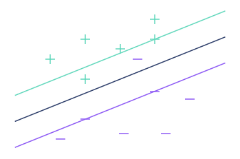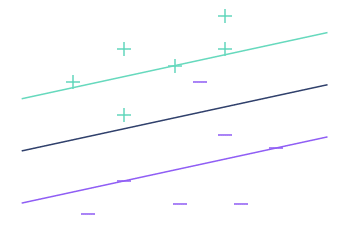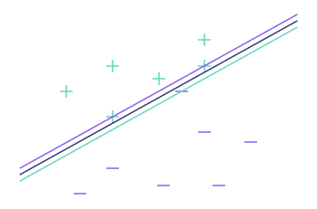 Unser Ziel ist es nun, unserem Algorithmus zu erlauben, eine gewisse Anzahl von Fehlern bei der Auswahl der Trennungsgeraden zu machen. Dies wird als „soft margin“ bezeichnet, was man mit „weicher Rand“ übersetzen könnte. Wir werden nun die Funktionsweise des Soft Margin Classifiers-Algorithmus, der zwischen der Support Vector Machine und dem Maximal Margin Classifier angesiedelt ist, im Detail erläutern.