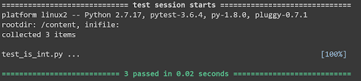 Die Ausführung des Befehls pytest in einem Terminal liefert das folgende Ergebnis: