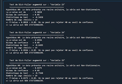 Was hier besonders interessant ist und beachtet werden sollte, ist das Argument „maxlag“: Es wird bestimmen, wie viele Lags unser Test maximal in Anspruch nehmen wird. Und hier werden wir iterative Tests durchführen müssen, da maxlag die p-Werte verändert, und zwar potenziell drastisch: Variablen, die den Test bei maxlag = 10 nicht bestehen, können ihn bei maxlag 20 vollständig bestehen.