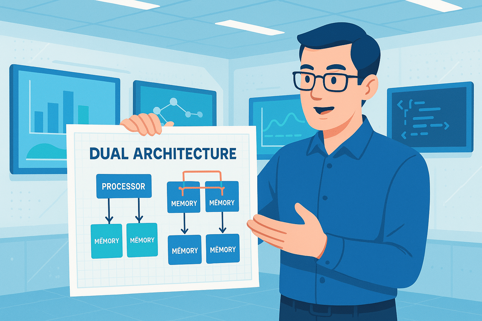 Im Gegensatz zur Von-Neumann-Architektur trennt die Harvard-Architektur den Datenspeicher vom Programmspeicher. Diese Trennung ermöglicht schnellere Zugriffe, da gleichzeitig auf Daten und Instruktionen zugegriffen werden kann – ein Vorteil bei vielen eingebetteten Systemen oder Mikrocontrollern.
