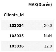 SELECT Kunden_id, MAX(Dauer) FROM Fusion GROUP BY Kunden_id