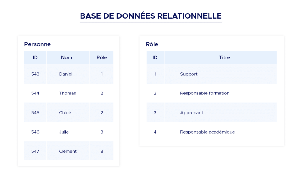 In relationalen Datenbanken werden Daten mithilfe von Tabellen organisiert.