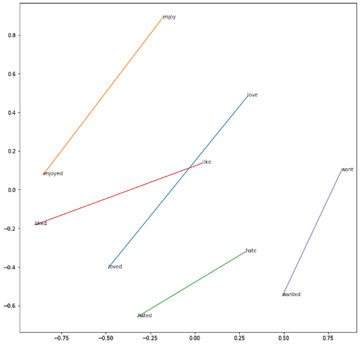 Man könnte z. B. erwarten, dass die Wörter „bemerkenswert“ und „bewundernswert“ durch Vektoren dargestellt werden, die in dem Vektorraum, in dem diese Vektoren definiert sind, relativ wenig voneinander entfernt sind.