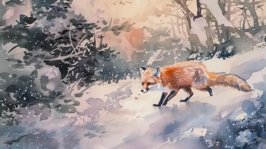 /imagine “A fox, Japanese watercolor style, running in a snowy forest at dusk –ar 16:9 –v 6”