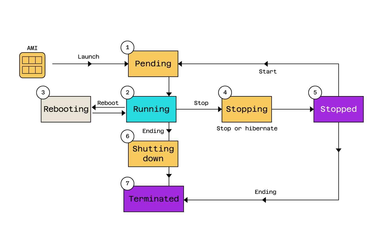Here’s an image showing the life cycle of an EC2 machine:
