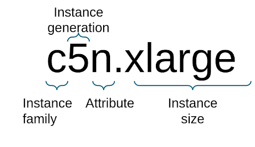 Once you’ve chosen the type, you need to determine the family of your machine. We need to choose the number of CPUs, RAM, storage type and processor. Within each family, instances are classified by size. The larger the size, the more powerful the machine. Below is an example of a machine name.