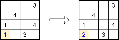 Here, the noted 1 doesn’t comply with the rules, so we try a 2 instead.