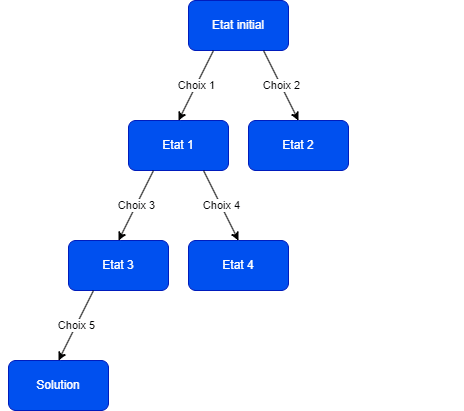- Step 4 – Solution: The algorithm continues to traverse the tree branch and make choices, repeating steps 1 to 3 until it reaches a valid solution. A solution is generally defined as a final state of the problem that satisfies the constraints or objectives set.