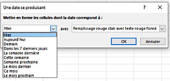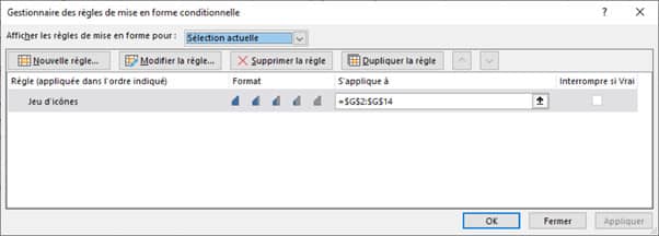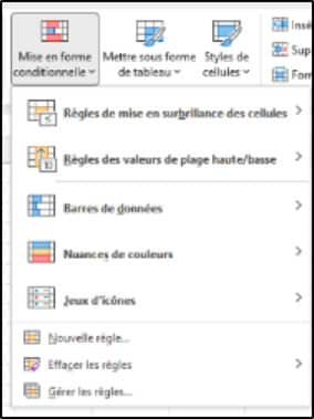 Don’t hesitate to go to Manage rules in Home / Conditional formatting to create, modify or delete a rule. Look carefully at the cell ranges to which these rules apply.