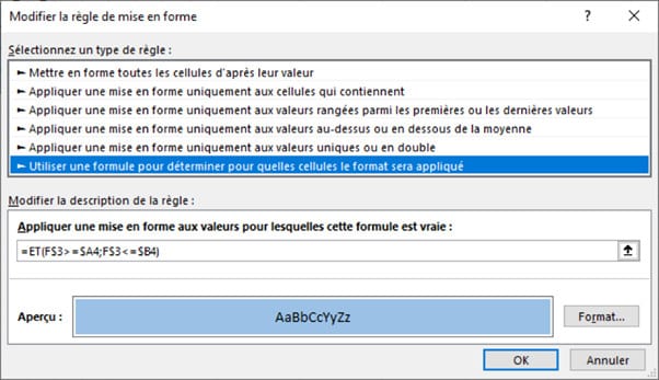 3/ Inserting functions into conditional formatting