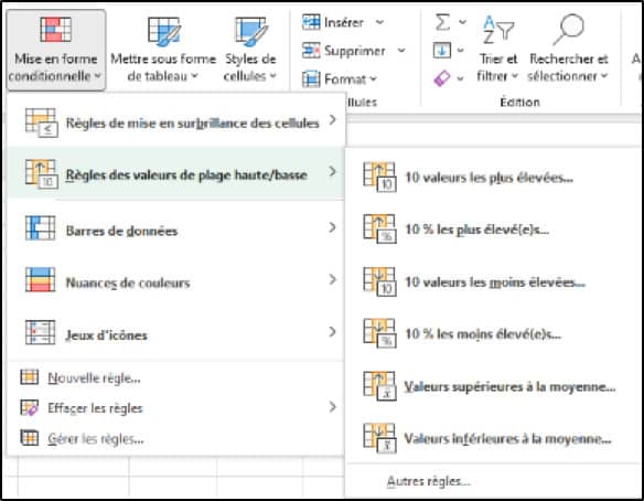 - To modify these rules as you wish, click on Home / Conditional formatting / Manage rules.