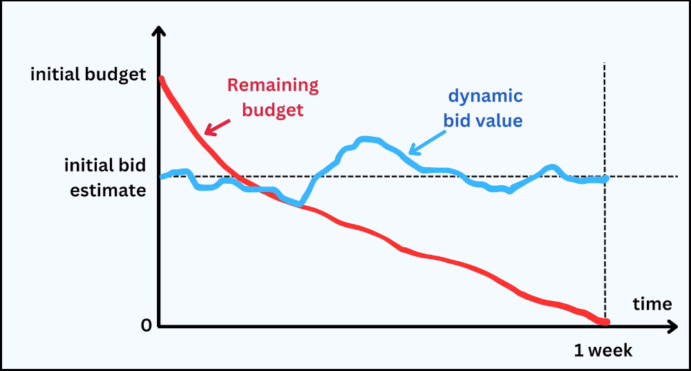When creating an advertising campaign, the advertiser generally does not specify a specific bid. Instead, they define a daily or campaign budget and its duration. For example, the advertiser defines a 7-day campaign for a budget of €100. Meta will then estimate how many times the ad is likely to be shown.