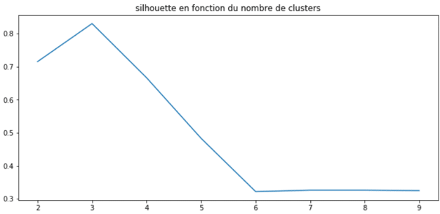 As with inertia, it is wise to display the coefficient’s evolution based on the number of clusters as shown below: