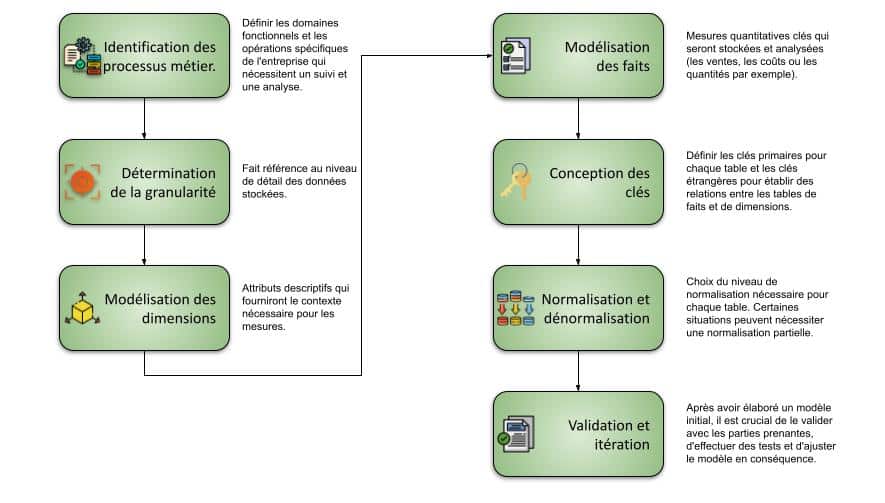 The Kimball method is based on a series of key principles that define how data should be structured and organized to facilitate its analysis and exploitation.