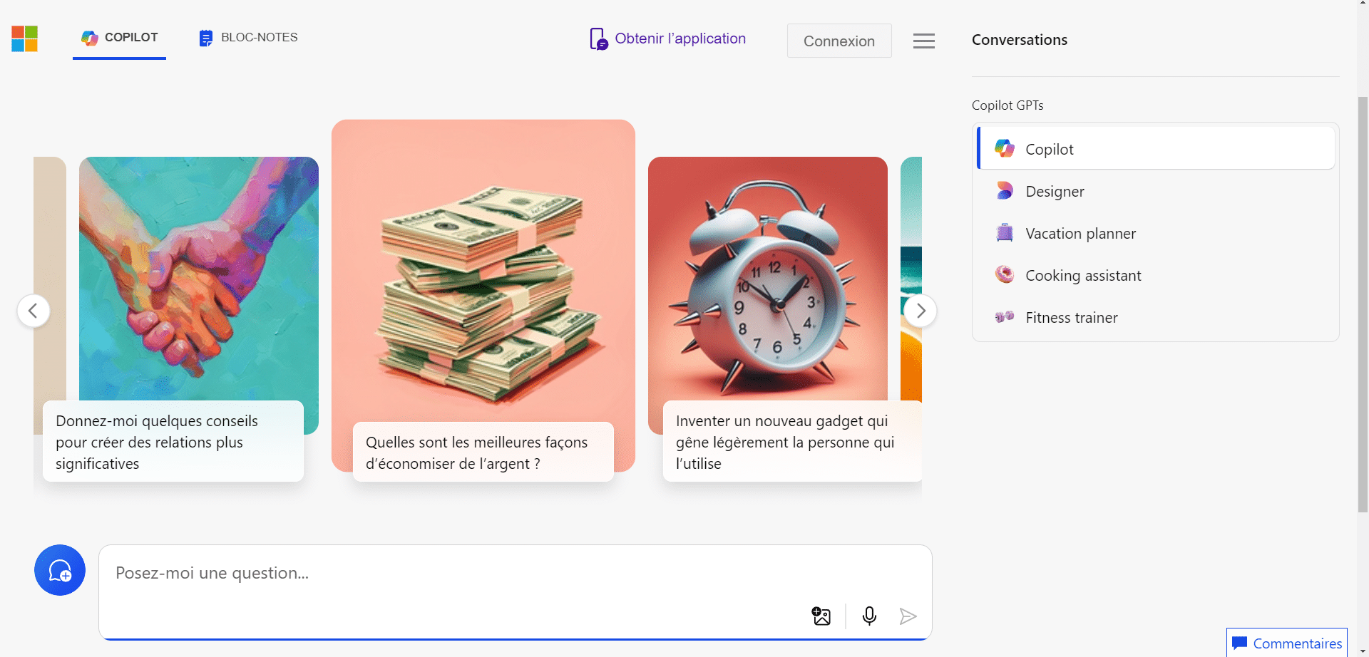 As you might already be aware: Microsoft was among the first backers of OpenAI, the powerhouse behind ChatGPT. Hence, its Copilot feature leverages OpenAI’s artificial intelligence engine. In this regard, we could liken Copilot to a type of free ChatGPT, even if it usually takes some time to incorporate the latest innovations of its model. In particular, Copilot integrates the generative image AI Dall.e 3. Moreover, Microsoft has distinguished its version of ChatGTV, setting it apart with two notable features: