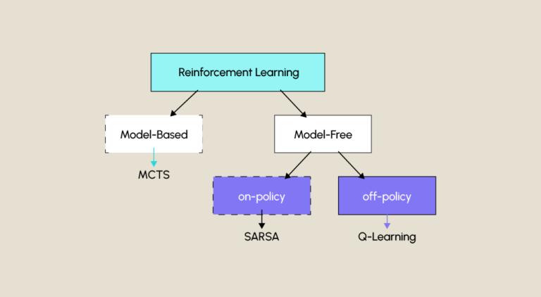 SARSA is a learning algorithm whose name comes from State-Action-Reward-State-Action, meaning State-Action-Reward-State-Action, and refers to the sequence of elements that make up the algorithm. It is an algorithm based on a table of action values (or Q-table, Q representing the measure of the quality of an action performed) which assigns to each state-action pair a value representing the expected reward.