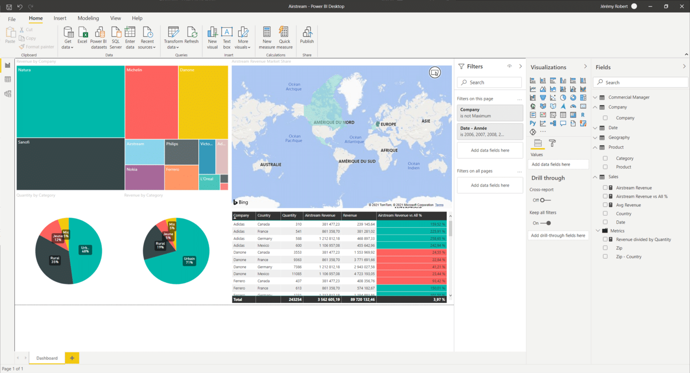 Power BI es la herramienta de Business Intelligence de Microsoft o informática de decisiones en francés. Esta disciplina abarca todas las técnicas utilizadas para recopilar datos, modelarlos y analizarlos a través de tableros de control. La herramienta también permite difundir los análisis dentro de los departamentos operativos para proporcionar una visión integral de cada actividad.