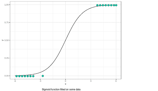 La función que mejor cumple estas condiciones es la función sigmoide, definida en R con valores en [0,1]. Se escribe de la siguiente manera :